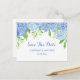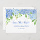 Blue Hydrangea Floral Greenery Save the Date Announcement Postcard