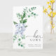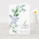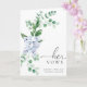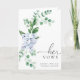 The Ferras wedding vow card features a timeless blue hydrangea watercolor floral design and modern fonts. The script heading is an image that cannot be edited. All of the other text is fully editable. For more advanced customisation of this design, simply select the "Customise It" button above.