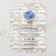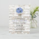 Blue Hydrangea Floral Jar Rustic White Wood Wedding Invitations.