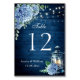 Blue Hydrangea Floral Lantern Navy Wood Wedding Table Number