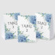 Blue hydrangeas on a white background beautiful table number tent. A beautiful way to let your guests know where they’re seated at the reception. The watercolor hydrangeas are just beautiful. Classy & chic.