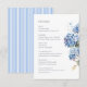 Enhance your elegant wedding stationery suite with this blue hydrangea wedding details enclosure card. The design features a watercolor floral design with a blue and white stripe back. Provide your wedding guests with essential schedule, travel, accommodation, and venue information in a beautiful and classic format.