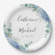 Blue hydrangeas on a white background beautiful bridal shower or wedding reception paper plate. A perfect napkin for any season. The watercolor hydrangeas are just beautiful. Classy & chic.