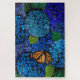 Pretty blue Hydrangea and butterfly floral Jigsaw Puzzle Template with over 1000 Pieces.