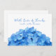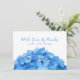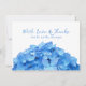 Blue hydrangea flowers wedding thank you for the gift cards. Customise the message for any occasion or use to thank everyone for gifts, support, help, and service on the big day. A truly gorgeous blue hydrangea flower decorates the bottom front of 4x6 flat cards. Or change the size, and upgrade the paper as you like. Personalise the front, "with love and thanks from Mr. and Mrs. (last name here)". That line can also be deleted. This card is also offered as a download.