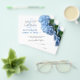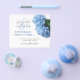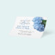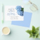 Budget save the date announcements with blue hydrangea flowers design. Part of the “Blue Heaven” design line, the white paper has black script and printed fonts. Customise the text as needed for your event. Pretty, light blue flowers with greenery decorate one edge. Reverse is solid blue