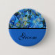 blue hydrangea flowers wedding name buttons, for groom, father, brother, grandpa, of the bride or groom, best man, groomsman