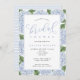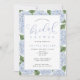 Blue Hydrangea Flowers Calligraphy Bridal Shower Invitation