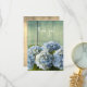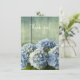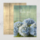 Thank you cards with wood grain background and blue hydrangea flowers. Use for weddings, birthdays, hospitality, or any reason. Scripture is for friendship and is easy to change or delete.