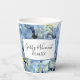 Personalise these pretty Blue Hydrangea Flowers Wedding Paper Cups for your casual yet classy summer marriage reception or bridal shower garden party. These informal yet elegant disposable cups feature a close up floral photograph of light blue hydrangea flower blossom petals.