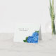 Floral wedding, custom thank you notes. Simple, personalised design includes bright blue hydrangea flowers on the front with a template for adding names, and custom message of thanks inside in printed font style.