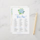 This bridal shower game card is What's in your purse? The design features watercolor blue hydrangea flowers and faux gold geometric design on the back. Personalise the back of the cards with the bride's name. Matching products available.