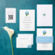 Easy to customise formal and elegant text invites guests to celebrate the union of a couple in marriage. New traditional grand-millennial style features a crisp colour palette of French blue and green with lots of light and airy white and a perfect antique blue hydrangea flower illustration.