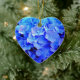 This Christmas ornament features a vivid image of bright blue hydrangeas with subtle shades of lighter and darker blues with a touch of pink. Add some fresh colourful flowers to your holiday tree or give this ornament to a gardener or flower-lover in your life. This image is based on an original photograph with painterly effects applied and it's available on a wide range of ornament shapes, including hearts, stars, and ovals. It's also part of a collection of floral ornaments by Sea Change Designs.