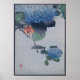 Blue Hydrangea Japanese Woodcut with Bird Poster