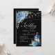Blue Hydrangea Lantern Black Background Wedding Invitation