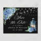 Blue Hydrangea Lantern Black Wedding Save the Date Postcard