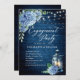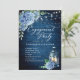 Blue Hydrangea Lantern Navy Wood Engagement Party Invitation