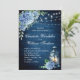 Blue Hydrangea Lantern Navy Wood Wedding Invitation