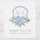 Blue Hydrangea Monogram Crest Customised Wedding Wine Label