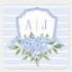 Blue Hydrangea Monogram Crest with Stripes Favour Square Sticker