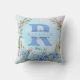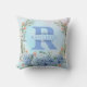 Pretty floral, monogram pillow - lovely shades of blue hydrangeas surround your initial and name!  The same design is on both the front and back.  Be sure to choose your size and fabric prior to placing it into your shopping cart.
