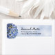 Blue hydrangeas address labels. Small, rectangular sticky labels with light blue flowers and a blue background bordered by white. Template text is black in cute font for the name and printed text for address.