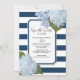 Blue Hydrangea Save the Date Wide Striped Floral Invitation