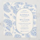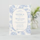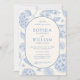 The background is adorned with a stunning allover print of blue hydrangeas, meticulously rendered in a vintage engraving style. This intricate design evokes the charm and grace of a bygone era, creating a serene and romantic atmosphere for your wedding details.
