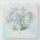 This gorgeous marble coaster features a watercolor floral bouquet with hydrangeas in pastel blues and comes with a cork backing to help protect your furniture.