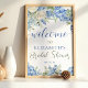 Blue Hydrangea White Roses Floral Script Welcome Poster