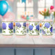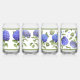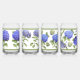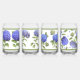 A set of four glasses featuring four different designs of beautiful blue Hydrangea flowers painted from flowers grown in the artist's own garden - this is not a vintage reproduction! Bordered with coordinating green bands.