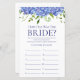 This lovely blue hydrangeas How Old Was The Bride? bridal shower game sheet is elegant and charming - perfect for any garden, botanical, rustic, romantic, floral, formal or vintage wedding. Its exquisite combination of graceful multi-hued blue hydrangeas and wispy greenery is flowy, delicate, and beautiful. This fun and easy game is sure to bring lots of laughter to any shower! Have family and friends send you pictures of the bride at different ages and have them printed. Number them and set them near these game sheets. Simply give a sheet to each guest (don't forget the pens) and let the competition begin! You'll be amazed at how many people really know the ages of the bride. In seconds you can see how your game sheet will look. Simply select Personalise this Template and type in the bride's name.