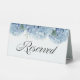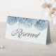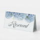 A reserved sign embellished with blue hydrangea watercolor florals and elegant script text.