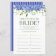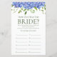 This lovely blue hydrangeas How Old Was The Bride? bridal shower game sheet is elegant and charming - perfect for any garden, botanical, rustic, romantic, floral, formal or vintage wedding. Its exquisite combination of graceful multi-hued blue hydrangeas and wispy greenery is flowy, delicate, and beautiful. This fun and easy game is sure to bring lots of laughter to any shower! Have family and friends send you pictures of the bride at different ages and have them printed. Number them and set them near these game sheets. Simply give a sheet to each guest (don't forget the pens) and let the competition begin! You'll be amazed at how many people really know the ages of the bride. In seconds you can see how your game sheet will look. Simply select Personalise this Template and type in the bride's name.