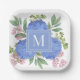Blue Hydrangeas Modern Bouquet Custom Monogram Paper Plate