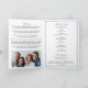 The front features an oval shaped portrait photo, while the inside includes space for the obituary, order of service, and a family photo. The back offers a customisable section for a poem, prayer, or acknowledgement.