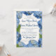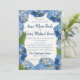 Beautiful blue hydrangeas and the look of weathered wood rustic, boho garden wedding invitation. Personalise text as preferred.