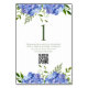 This sign is elegant and chic with flowing natural greenery and multi-hued blue hydrangeas. The font is modern and crisp making it easy for your guests to see the table numbers at your reception. It has a request for photo sharing to your wedding website by using your qr code. Guests will love sharing their beautiful photos with you. To create your table number signs simply select Personalise this template and type in your table number, type in your qr code URL, one at a time and add them in your cart. One per table number. Then repeat until you have all your table number cards. It will literally take you seconds to create each one.