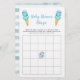 Have some fun at your baby shower with this bingo game card. Illustration of blue and mint green ice cream on a waffle cone. The bingo game asks the guests to guess what gifts the mummy-to-be will be receiving. Original illustration and design by Namibear Art Studio.©Namibear