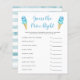 Cute ice cream theme baby shower "guess the price right" game card featuring watercolor illustration of blue and mint green ice creams on a waffle cone. The texts are editable. Perfect game to play during the shower. It lists baby essentials and asks guests to guess the price. Whoever guesses the price the closest wins!