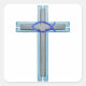 Blue Ichthus Cross Square Sticker