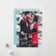 Your own photograph takes centre stage on this modern flat Holiday card. At the bottom is white typography that says "Merry Christmas", and two text fields for you to customise. The back of the card is a aqua blue and white bokeh snow pattern with a line of icicles at the top. Delicate and festive!