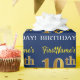 This wrapping paper design features a message like "FirstName’s 10th BIRTHDAY!", with the "10th" having a faux/imitation gold-like colour appearance. The name can be personalised, and the background is coloured blue. It could perhaps be used when wrapping gifts being given for somebody’s tenth birthday. [~Z0000181]