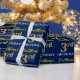 This wrapping paper design features a message like "FirstName’s 3rd BIRTHDAY!", with the "3rd" having a faux/imitation gold-like colour appearance. The name can be personalised, and the background is coloured blue. It could perhaps be used when wrapping gifts being given for somebody’s third birthday. [~Z0000181]
