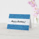 Abstract blue paint like texture birthday card design. Happy Birthday on the front on a white overlaid effect band and on the inside.