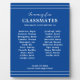 This charming white on blue school reunion memorial plaque is a beautiful way to remember and honour those classmates who have passed, but will always be remembered. There is room for up to 24 names.