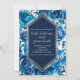 Blue Indigo Floral Flowers Elegant Chic Wedding Invitation
