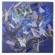 Blue indigo white grey abstract geometric stripes ceramic tile