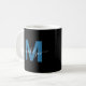 Personalised Modern Blue Black And White Initial Script Name Monogram Coffee Mug. This sleek monogram mug combines a modern minimalist style with a simple yet stylish look, perfect for any coffee or tea lover. Featuring a bold blue initial on a black background and a white script name, this mug has the monogram displayed on both sides, giving it a personalised touch from every angle. Ideal for home, the office, or as a thoughtful gift, it’s crafted with classic sophistication and clean typography. A great choice for birthdays, housewarmings, holidays, or just because, this chic mug adds a stylish, personal element to anyone’s day!